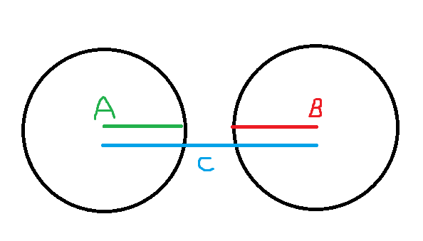 그리고 두 원의 중점을 잇는 선 C가 있을 때, 만약 C가 A + B 보다 길이가 작아진다면 그것은 무엇을 의미하는 것일까?