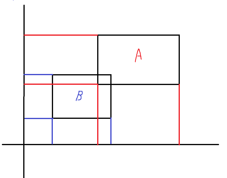 사각형 A와 B의 각각 왼쪽 아래 꼭짓점과 오른쪽 위의 꼭짓점은 객체가 가지고 있는 가장 작은 좌표값의 정점과 가장 큰 좌표값의 정점이다.