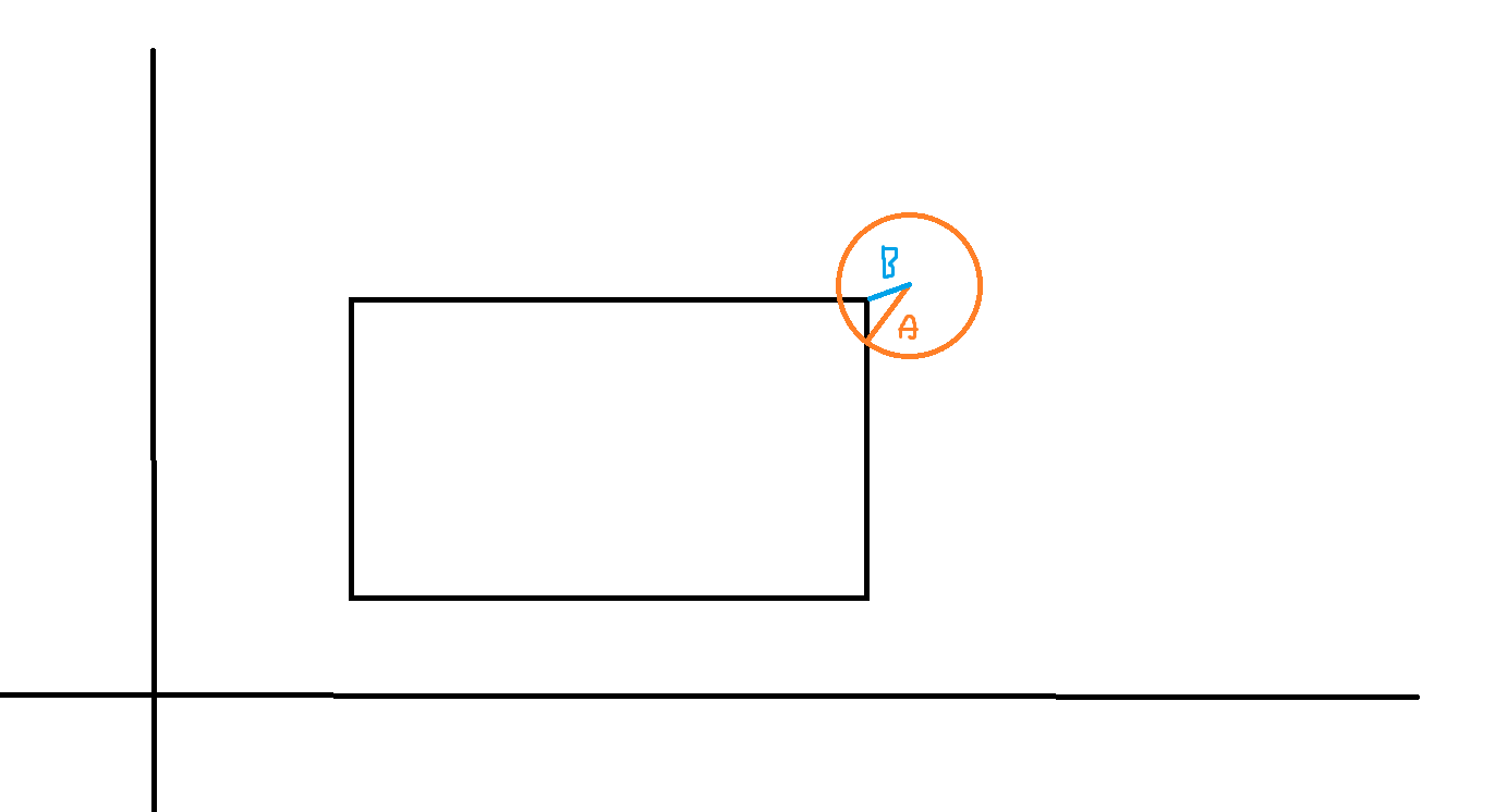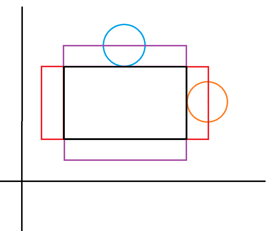 하지만 여기서 문제가 생긴다. 이 경우 각 변에서의 충돌은 확인할 수 있지만 꼭짓점으로 충돌이 일어나면 확인할 수 없다. 때문에 꼭짓점에서의 충돌을 별도로 확인해야 한다.