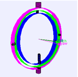 각 축이 x, y, z의 회전축이며, 이 형태가 짐벌처럼 이뤄져 있다. 각 고리는 자신의 축을 기준으로만 회전하는데, 단일축으로 회전함에도 파란 고리가 모든 방향으로 회전하는 것처럼 보이는 이유는 고리들이 서로 연결되어 있다. 세 축은 서로 종속적이기 때문에 한 축의 회전이 다른 축에 영향을 준다.