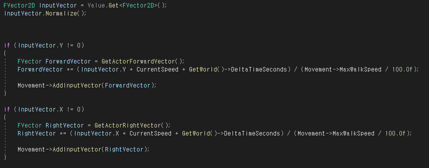 입력 액션에서 나는 읽어온 값을 어떻게 저장할 것인지 정해뒀기 때문에, Get<Type>()을 이용해 알맞은 값으로 읽어와 사용하면 된다.