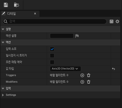 입력 액션 내부로 들어가면 다음과 같은 창이 나온다.